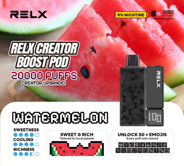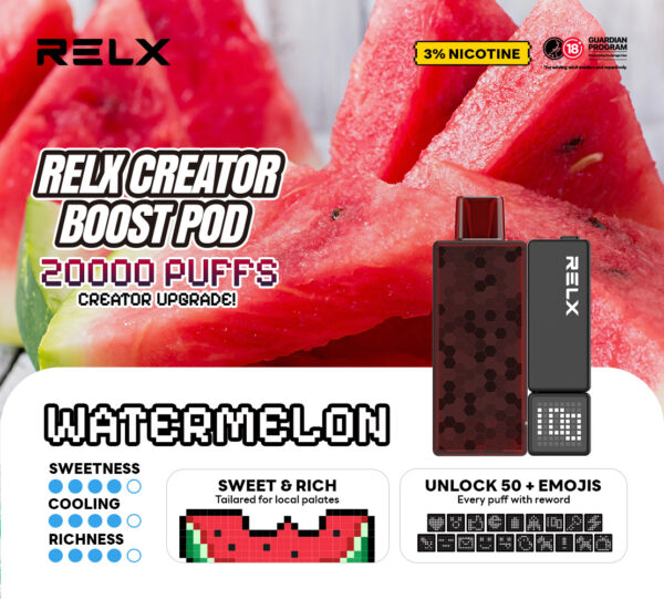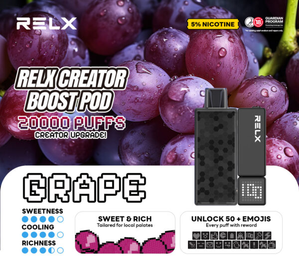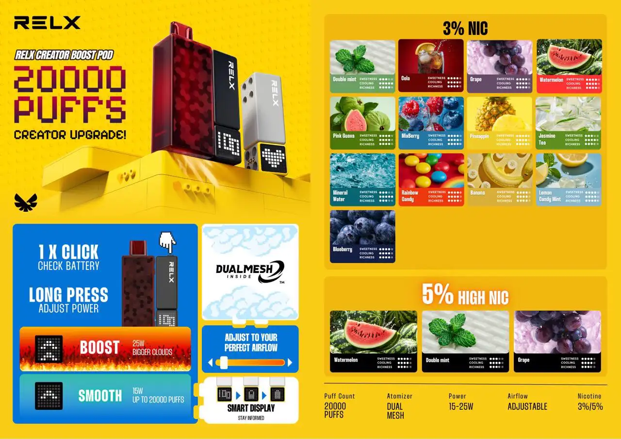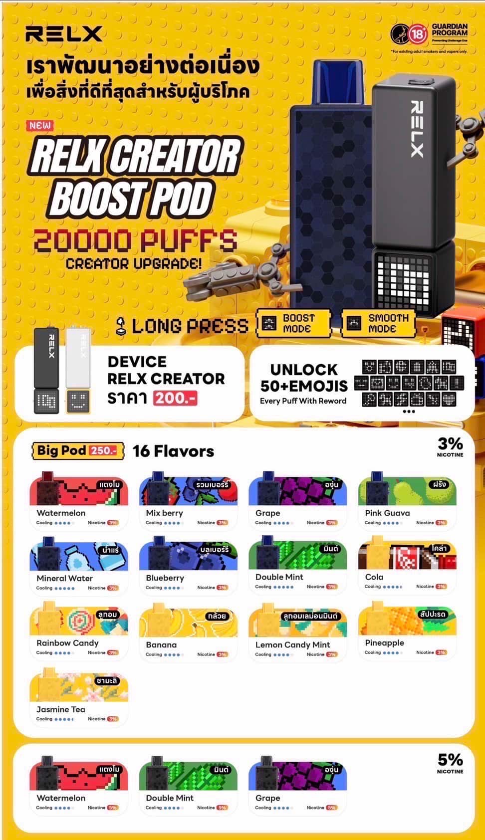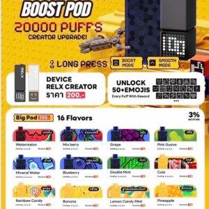 เป็นพอตใช้แล้วทิ้งระดับพรีเมียมจากแบรนด์ RELX ที่มาพร้อมกับคุณสมบัติและเทคโนโลยีที่ทันสมัย เหมาะสำหรับผู้ที่ต้องการประสบการณ์การสูบที่ยาวนานและรสชาติที่ชัดเจน